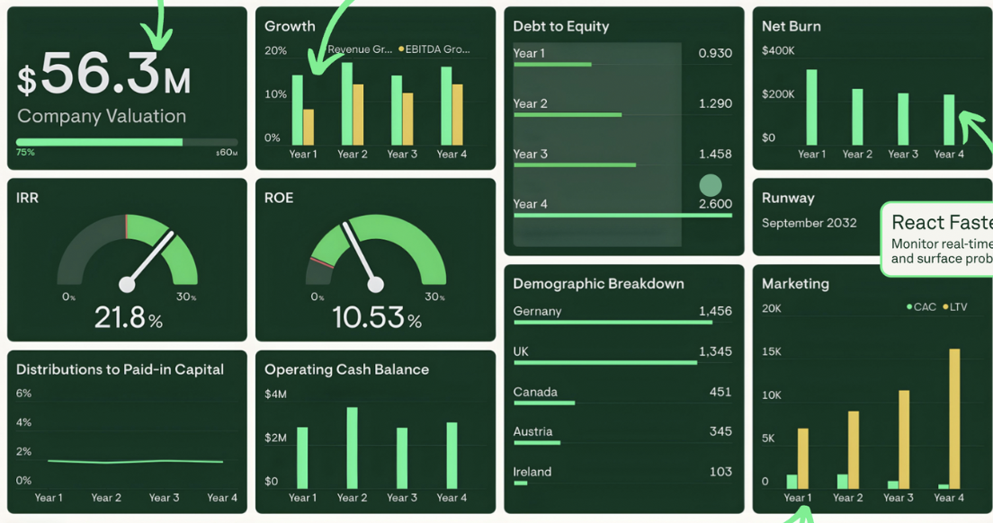 Empower your CFO and COO to plan growth with precision, set clear priorities, and track quarterly progress across all business functions.